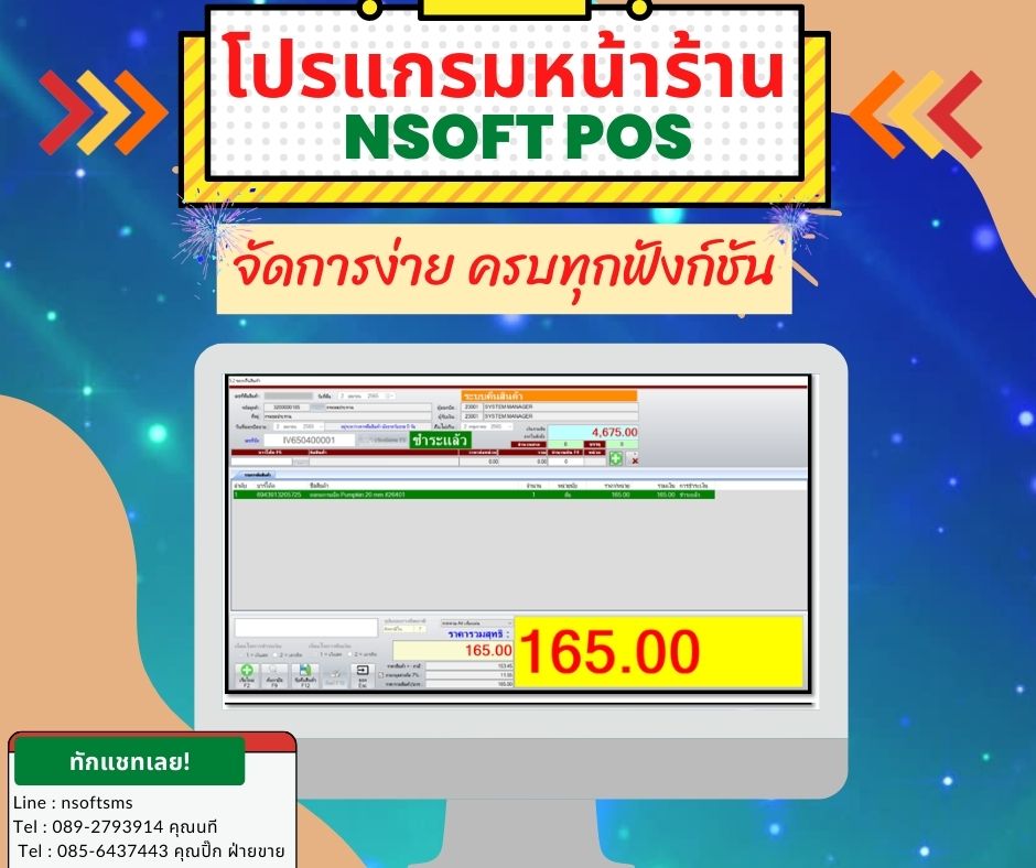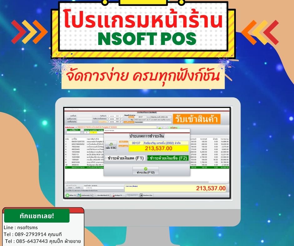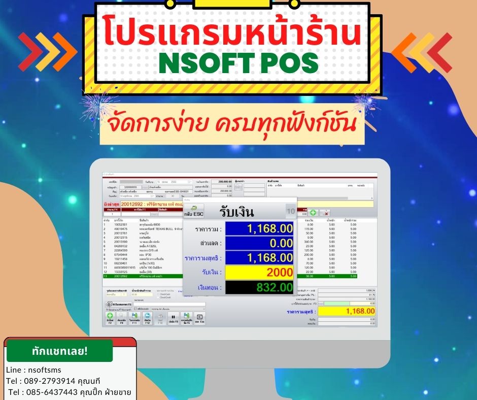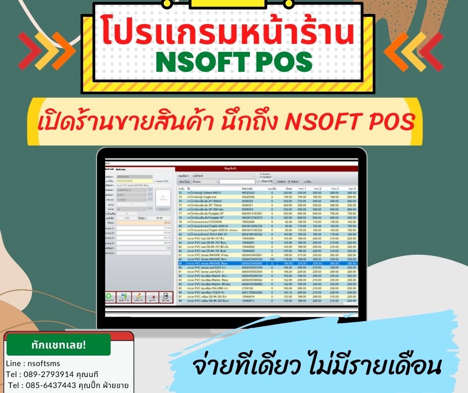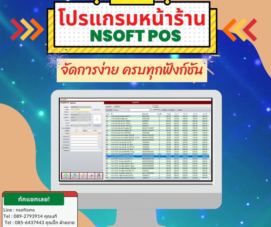ระบบขาย สต็อก ระบบออกบาร์โค้ด ระบบรับเข้าสินค้า ระบบคืนสินค้า ระบบสะสมแต้มสมาชิก ระบบหุ้นและปันผลยอดซื้อ อื่นๆ ในระบบ nSoft POS