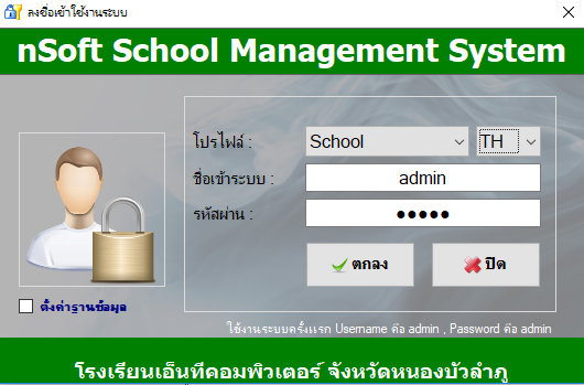 หน้าระบบลงชื่อเข้าใช้งาน โปรแกรมบริหารงานโรงเรียน,login,ลงชื่อเข้าใช้งานระบบ,nSoftsms